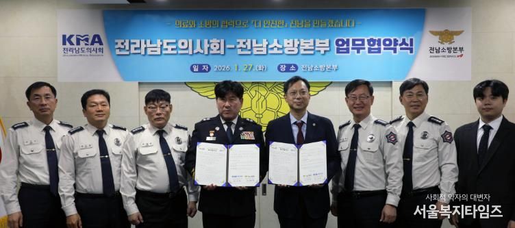 전남소방본부는 전라남도의사회와 업무협약(MOU)을 체결하고, 응급환자 발생 시 현장 단계부터 전문의가 적극 개입하는 새로운 응급의료 협력 모델을 가동한다고 밝혔다.