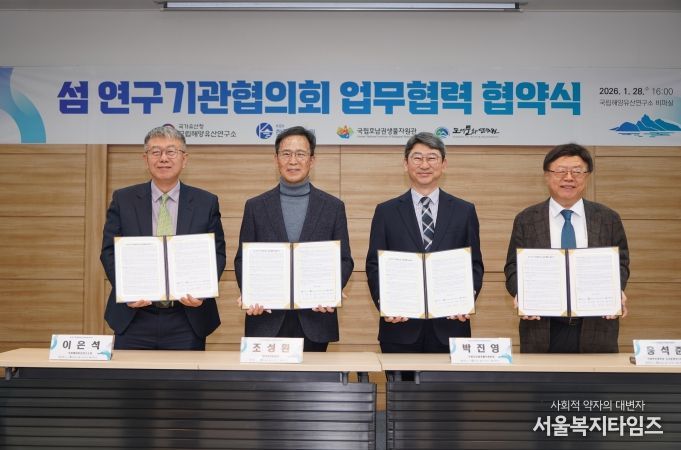 서울복지타임즈 이재연 기자 | 기후에너지환경부 산하 국립호남권생물자원관(관장 박진영)은 국립해양유산연구소, 한국섬진흥원, 국립목포대학교 도서문화연구원과 함께 2026년 1월 28일 국립해양유산연구소(전남 목포시 소재)에서 '섬 연구기관 협의회' 출범을 위한 업무협약을 체결했다.