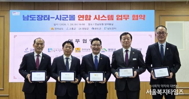서울복지타임즈 이재연 기자 | 완도군은 지난 28일 전남도청 정약용실에서 남도장터, 고흥군, 영암군과 함께 ‘남도 장터-시군 몰 연합 시스템 업무 협약’을 체결했다.