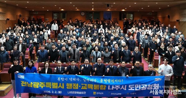 나주시는 2일 나주문화예술회관에서 전라남도와 함께 ‘전남·광주 행정·교육통합 나주시 도민공청회’를 개최하고 통합에 따른 지역 발전 방안과 시민 의견을 청취했다고 밝혔다.