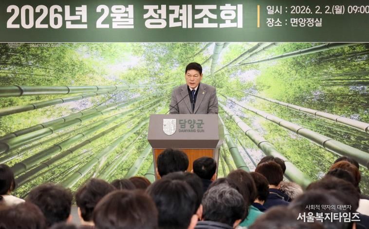 서울복지타임즈 이재연 기자 | 담양군은 2일 군청 면앙정실에서 공직자 180여 명이 참석한 가운데 2월 정례조회를 열고 군정 현안을 점검했다.