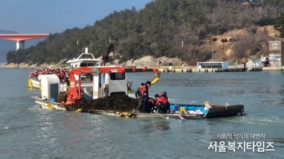 서울복지타임즈 이재연 기자 | 완도해양경찰서는 4일 오전 11시 42분경 전남 완도군 신지도 강독선착장 인근 해상에서 어선 A호(6.67톤, 양식장관리선)가 침수 중이라는 신고를 접수하고, 현장에 출동해 승선원 2명을 구조했다고 밝혔다.