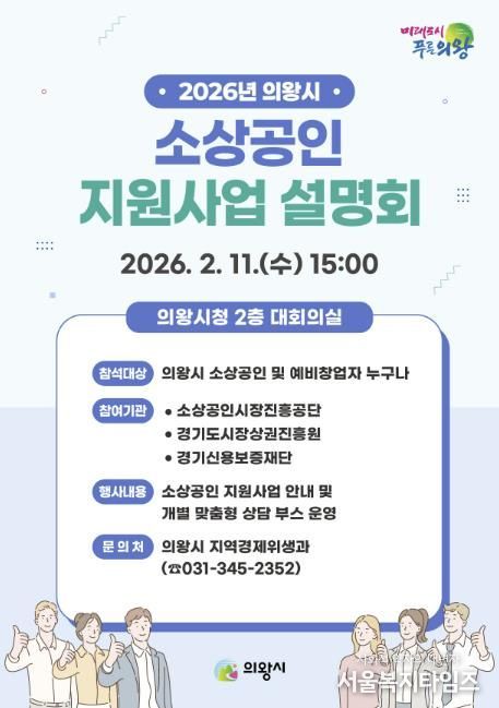 서울복지타임즈 이재연 기자 | 의왕시가 2월 11일 오후 3시, 시청 대회의실에서 ‘2026년 소상공인 지원사업 설명회’를 개최한다.