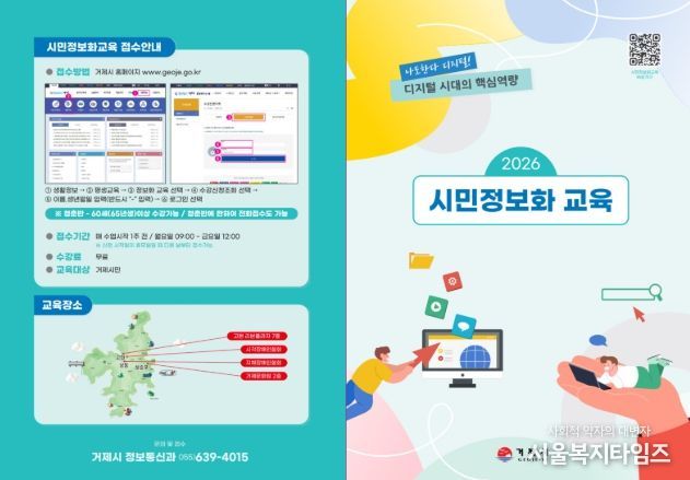 서울복지타임즈 이재연 기자 | 거제시가 시민의 디지털 역량 강화를 위해 ‘2026년 시민정보화교육’을 2월 23일부터 12월 4일까지 운영하며 수강 신청은 2월 9일부터 선착순으로 접수한다고 밝혔다.