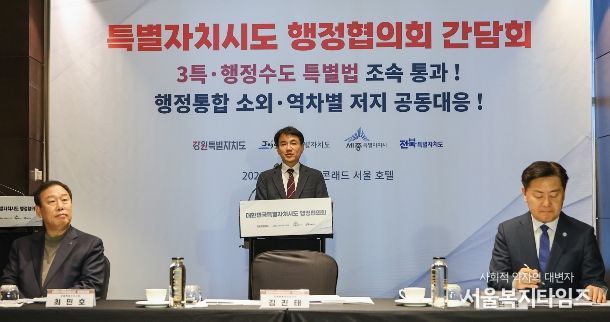 서울복지타임즈 이재연 기자 | 대한민국특별자치시도 행정협의회(대표회장 강원특별자치도지사 김진태) 시‧도지사는 2026년 2월 8일 서울 콘래드 호텔에서 긴급 회동, 간담회를 개최했다.