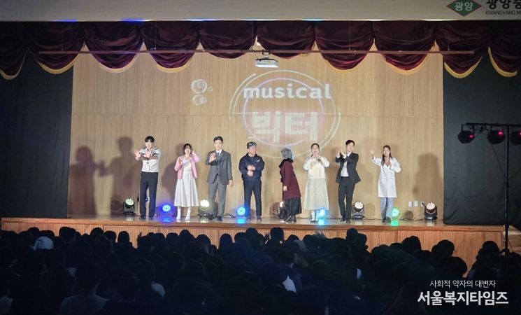 서울복지타임즈 이재연 기자 | 광진구가 관내 학생들에게 특별한 문화예술 경험을 제공하기 위해 추진한 학교로 찾아가는 뮤지컬 ‘빅터’ 공연이 학생들의 열띤 호응이 이어지며 마무리 단계에 접어들었다.