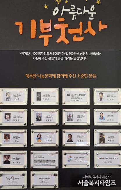 서울복지타임즈 이재연 기자 | 부천시는 기증자에 대한 감사의 뜻을 전하고 기부 문화를 확산하기 위해 상동도서관 1층 로비에 설치된 ‘아름다운 기부천사’ 게시판에 신규 기증기관 2곳인 ㈜웅진과 부천서점(업)협의회를 등재했다고 10일 밝혔다.