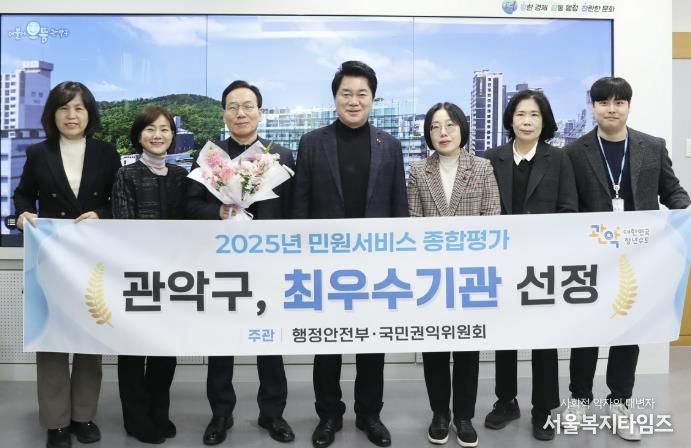 서울복지타임즈 이재연 기자 | 관악구가 행정안전부와 국민권익위원회가 공동 주관한 ‘2025년 민원서비스 종합평가’에서 가장 우수한 성적을 거둬 최우수 기관으로 선정되는 영예를 안았다.