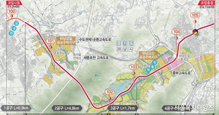 한편, 송파하남선은 지하철 3호선 오금역에서 하남시청역을 연장하는 11.7㎞ 구간으로 1공구는 서울시, 2~4공구는 경기도가 사업시행자로 2027년 착공, 2032년 준공을 목표로 추진하고 있다.
