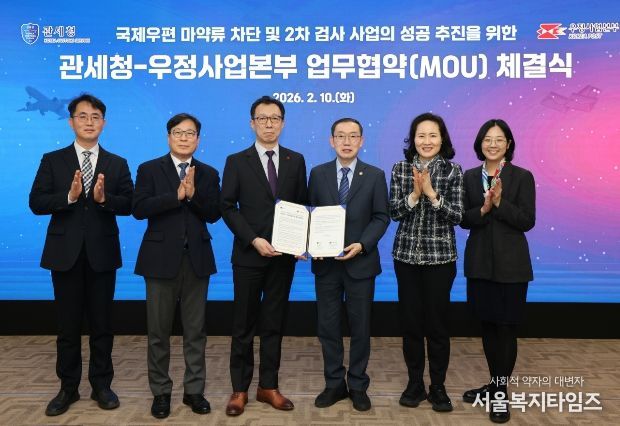 서울복지타임즈 이재연 기자 | 관세청과 과학기술정보통신부 우정사업본부(본부장 직무대리 곽병진)는 2월 10일 서울세관에서 국제우편을 통한 마약류 반입을 원천 차단하기 위해 '국제우편 마약류 차단 및 2차 검사 사업의 성공 추진을 위한 업무협약(MOU)'을 체결했다.