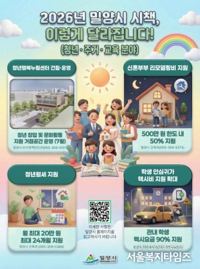 서울복지타임즈 이재연 기자 | 밀양시는 청년들이 지역에 안정적으로 뿌리 내리고 미래를 설계할 수 있도록 주거와 교육, 문화가 어우러진 ‘청년 친화 도시’ 조성에 행정력을 집중한다. 2026년 청년 정책의 핵심은 청년들의 거점 공간 마련과 안정적인 주거 사다리를 구축하는 것이다.