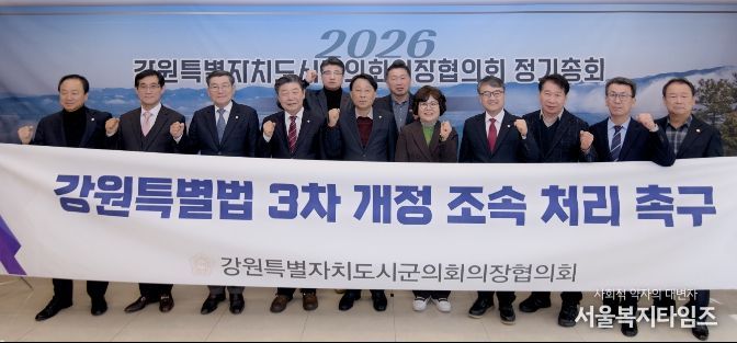 서울복지타임즈 이재연 기자 | 2026년 강원특별자치도시군의회의장협의회 정기총회가 13일 춘천 세종호텔에서 열렸다.