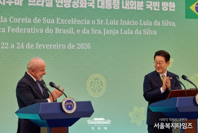 서울복지타임즈 이재연 기자 | 이재명 대통령과 루이스 이나시우 룰라 다시우바 브라질 대통령은 23일 정상회담을 갖고, 양국 관계를 '전략적 동반자 관계'로 격상시키기로 하고, 이를 이행하기 위한 '한-브라질 4개년 행동계획'을 채택했다.