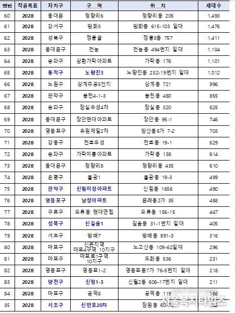 서울복지타임즈 이재연 기자 | 서울시는 26일 오전 10시 30분 시청 3층 간담회장에서 열린 ‘8만 5천호 신속착공 발표회’에서 3년간(2026~2028년) 조기 착공이 가능한 85개 구역의 명단과 착공 일정을 전격 공개하고, 최근 정부의 부동산 규제 강화로 위축된 정비사업에 활력을 불어넣기 위한 ‘정비사업 추진 정상화 방안’을 발표했다.