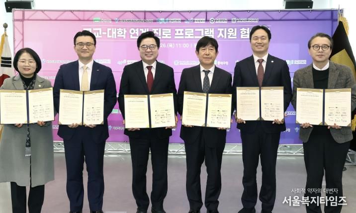 구는 사업 추진을 위해 지난 26일 동작관악교육지원청 및 숭실대·중앙대·총신대학교, 서울대학교 평생교육원과 ‘고교-대학 연계 진로 프로그램 지원을 위한 업무협약’을 체결했다.