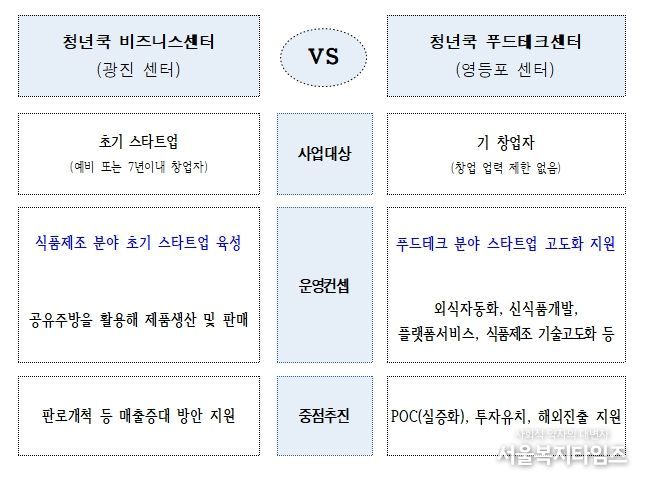 ‘서울시 청년 쿡 비즈니스·푸드테크 센터’는 식품 제조 분야 청년 스타트업에 대한 성장을 지원하는 전문 보육 기관이다. 서울시는 공간은 물론, 사업화 자금, 멘토링, 판로 개척 지원 등을 통해 지원기업들이 경쟁력을 갖출 수 있도록 전방위적으로 지원하고 있다.
