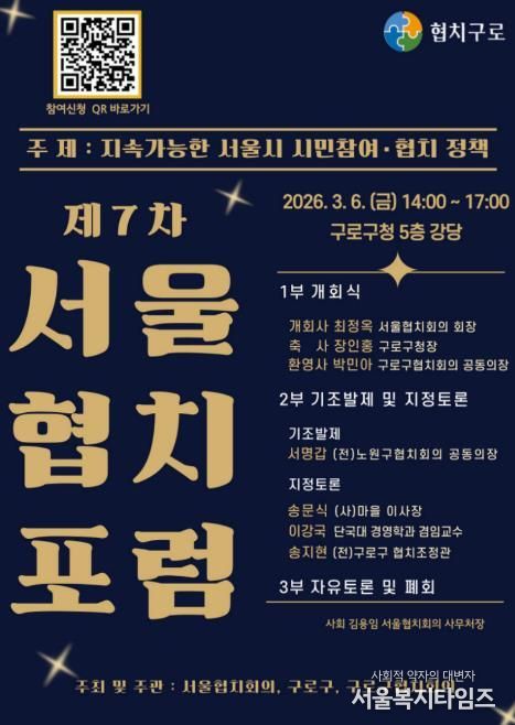 서울복지타임즈 이재연 기자 | 구로구가 3월 6일 오후 2시부터 5시까지 구청 본관 5층 대강당에서 ‘제7차 서울협치포럼’을 연다.