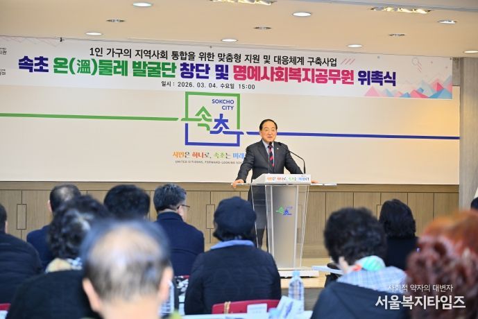서울복지타임즈 이재연 기자 | 속초시는 3월 4일 시청 대회의실에서 ‘속초 온(溫)둘레’ 발굴단 창단 및 명예사회복지공무원 위촉식을 개최했다.