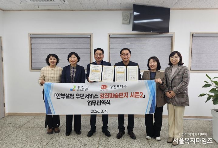 서울복지타임즈 이재연 기자 | 강진군이 작년에 이어 올해에도 행정안전부 공모사업 ‘2026년 읍면동 스마트 복지‧안전서비스 개선 모델 개발 지원사업’의 ‘안부살핌 우편서비스’ 부문에 선정돼 국비 1천만 원과 우체국공익재단 8백만 원을 포함한 총 2천 8백만 원 규모의 예산을 투입해 촘촘한 복지 안전망 구축에 나섰다.
