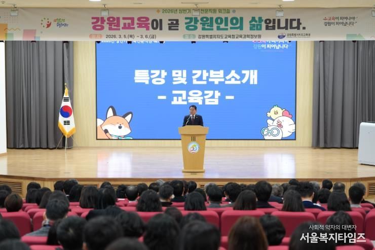 서울복지타임즈 이재연 기자 | 강원특별자치도교육청은 3월 5일부터 6일까지 이틀간 강원특별자치도교육청교육과학정보원 대강당에서 도내 교육전문직원 전체를 대상으로 ‘2026년 상반기 교육전문직원 워크숍’을 개최한다.
