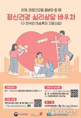 서울복지타임즈 이재연 기자 | 울산 울주군이 우울·불안 등 정서적 어려움을 겪는 울주군민의 마음건강과 정신건강 증진을 위해 정신건강 심리상담 바우처 사업을 추진한다고 6일 밝혔다.