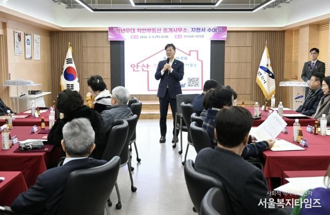 서울복지타임즈 이재연 기자 | 안산시는 지난 5일 시청 제1회의실에서 ‘청년우대 착한부동산 중개사무소’ 지정서 수여식과 정책 공유 간담회를 개최했다고 6일 밝혔다.