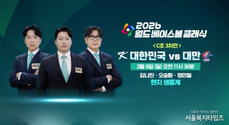 한편, MBC는 오늘(8일) 오전 11시 30분부터 일본 도쿄돔에서 열리는 WBC 본선 1라운드 대한민국과 대만의 경기를 오승환, 정민철 해설위원과 김나진 캐스터의 진행으로 현지 생중계한다.
