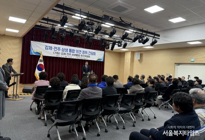 서울복지타임즈 이재연 기자 | 김제의 미래 지형을 바꿀 거대한 변화의 물결이 시작됐다. 8만 김제 시민의 염원을 담은 ‘(가칭)김제·전주 상생통합 추진위원회’가 7일 오후 4시 지평선문화축제발전소에서 의견 청취 간담회를 열고 공식적인 활동의 서막을 알렸다.