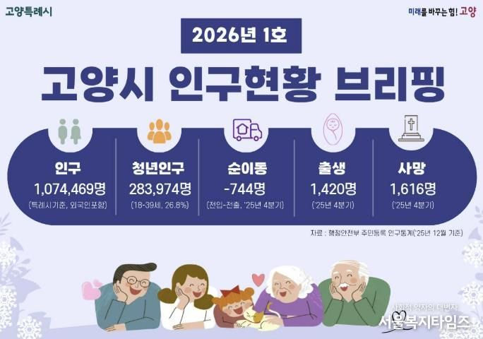 서울복지타임즈 이재연 기자 | 고양특례시가 저출생·고령화 등 급변하는 인구구조 변화에 선제적으로 대응하기 위해 ‘고양시 인구현황 브리핑’을 운영한다. 시는 인구 규모와 연령구조, 출생·사망, 인구이동 등 주요 지표를 행정동 단위까지 세분화해 인포그래픽으로 시각화하고, 이를 시청 홈페이지 행정자료방을 통해 정례적으로 공개할 계획이다.