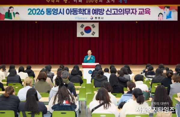 서울복지타임즈 이재연 기자 | 통영시는 지난 12일 통영시청 강당에서 어린이집 종사자 120여 명을 대상으로 ‘2026년 아동학대예방 신고의무자 1차 교육’을 실시하면서 본격적인 아동 안전망 강화에 나섰다.