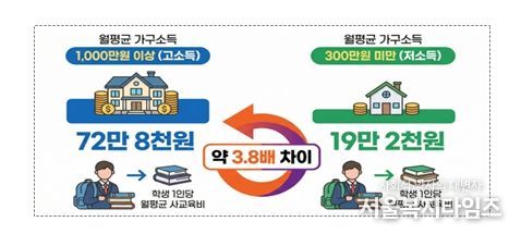 서울시교육청은 서울시 가구의 소득 수준에 따라 학생 1인당 월평균 사교육비 격차가 크게 나타난 점을 심각하게 보고, 교육격차가 심화될 가능성을 우려하고 있다.