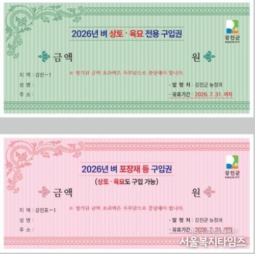 군은 농가별 영농 형태가 다르다는 점에 착안해 ‘상토·육묘 전용 구입권’과 ‘벼 포장재 구입권’ 2종으로 나너 발행했다.