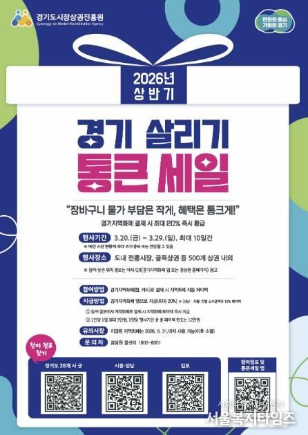 서울복지타임즈 이재연 기자 | 부천시는 관내 전통시장과 골목상권 등 39개 상권에서 3월 20일부터 29일까지 ‘2026년 상반기 경기 살리기 통큰 세일’이 열린다고 18일 밝혔다.