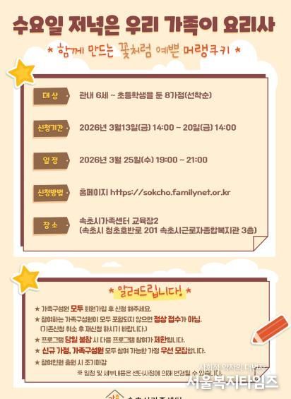 서울복지타임즈 이재연 기자 | 속초시가족센터는 2026년 가족 유형별 특성과 수요를 반영한 맞춤형 프로그램을 운영하며 가족 간 소통과 정서적 유대 강화에 나선다.