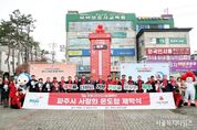 서울복지타임즈 이재연 기자 | 파주시는 지난 10일 금촌역 광장에서 사랑의 온도탑 100도시(℃)를 향한 힘찬 외침과 함께 ‘사랑의 온도탑’제막식을 개최했다고 밝혔다. 이번 행사는 ‘희망2026 나눔캠페인’(2025. 12. 1.~2026. 1. 31.)의 시작을 알리고 시민들의 기부 참여를 독려하기 위해 마련됐다. ‘희망2026 나눔캠페인’은 ‘행복을 더하는 기부, 기부로 바꾸는 파주’라는 표어 아래 이달부터 내년 1월 말까지 62일간 진행된다. 올해 사랑의 온도탑 모금 목표액은 11억 원으로, 모금 목표액의 1%(1,100만 원)가 모금될 때마다 온도탑도 1도시(℃)씩 올라간다. 이날 제막식에서는 ㈜비.엘.아이 서경아 대표의 파주시 ‘제26호 아너소사이어티’가입식도 함께 진행됐다. 또한, 아너소사이어티 회원들과 파주상공회의소, 사회복지기관, 읍면동 지역사회보장협의체 등 여러 단체에서 참여해 나눔 문화 확산에 동참하는 의지를 나타냈다. 김경일 파주시장은 “사랑의 온도탑은 ‘우리 곁에는 언제나 사랑과 나눔을 실천하는 이웃이 있다’라는 내용을 전하는 상징으로, 온도가 올라갈수록 마음의 온기가 느껴지고
