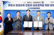 서울복지타임즈 이재연 기자 | 파주시는 지난 11일 연세대학교 미래교육원과 ‘일생일대 프로젝트’의 공동 기획·운영을 위한 평생교육 진흥 업무협약(MOU)을 체결하고, 2026년 사업 확대를 위한 협력 체계를 본격 가동했다. 이번 협약은 파주시의 대표적인 대학 연계 평생학습 사업인 ‘일생일대 프로젝트’를 보다 체계적이고 지속 가능하게 추진하기 위한 협력 기반을 마련하기 위한 것으로, 시민 생활권 내에서 명문 대학의 고품격 교육을 누릴 수 있는 학습 환경 조성을 목표로 한다. ‘일생일대 프로젝트’는 하나의 읍면동 평생학습센터와 하나의 대학을 1대 1로 연계해, 시민들에게 생활권 내 학습 기회를 제공하는 경기도 최초의 파주형 평생학습 모델이다. 연세대학교(미래교육원)은 이번 협약을 통해 대학이 보유한 전문성과 교육 자원을 활용해 파주시민을 위한 특화 교육과정을 설계·운영할 예정이다. 이날 협약식에서 오석영 연세대학교 미래교육원장은 “연세대학교 미래교육원은 지역사회와 함께하는 평생교육을 꾸준히 실천해 왔다”라며 “이번 협약을 통해 파주 시민에게 실질적이고 의미 있는 학습 기회를 제공하고, 대학이 가진 지식과 인적 자원