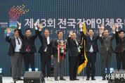서울복지타임즈 이득형 기자 | 국내 최대 장애인 스포츠 대축제인 제43회 전국장애인체육대회가 지난 8일 목포실내체육관에서 폐회식을 갖고 6일간의 대장정을 성공적으로 마무리했다. 지난 3일부터 8일까지 우리 시를 주 개최지로 전남 전역에서 열린 이번 대회는 역대 최대 규모인 31개 종목, 1만여명의 선수단과 임원이 참가하여 차별과 편견을 뛰어넘어 그동안 닦아온 실력과 기량을 마음껏 발휘하는 스포츠 대축제로 펼쳐졌다. 장애인과 비장애인이 하나되어 즐기는 화합과 희망의 대축제가 될 이번대회를 목포시는 다양한 분야에서 차질없이 준비했다. 교통·숙박·도심미관 정비 등은 물론이고 장애인 체전의 특수성을 고려하여 선수단이 묵는 숙박업소에 경사로를 임차해 편안하고 쾌적한 숙박을 지원했고, 목포관광 홍보, 문화재 야행 행사 안내, 셔틀버스 안내 등 다양한 홍보물을 선수들이 묵는 숙소에 비치했다. 또한 장애인 콜택시를 24시간 휴무없이 운행하도록 해 장애인 선수와 관람객의 교통 이동권을 보장하기 위해 노력했다. 대회 기간 중 시민들도 성공체전을 위해 힘을 모았다. 자원봉사자는 장애인 선수들의 경기 진행에