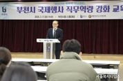 서울복지타임즈 이재연 기자 | 부천시는 지난 17일 시청 소통마당에서 시 공무원과 산하기관 직원 등 80여 명이 참석한 가운데 ‘국제행사 직무역량 강화 교육’을 실시했다. 이번 교육은 지방정부의 국제교류와 국제행사 중요성이 확대됨에 따라 공직자의 국제행사 기획·운영 역량을 높이고, 글로벌 업무 대응 능력을 강화하기 위해 마련됐다. 또한, 대한민국시도지사협의회 협조로 추진해 지방외교 관련 사업을 소개하고 지방정부 국제행사의 역할과 발전 방향에 대한 이해를 높이는 시간으로 진행됐다. 이날 교육에서는 신규 공무원으로 구성된 글로벌 서포터즈 위촉장 수여식도 함께 진행됐다. 글로벌 서포터즈는 부천시 공무원으로 구성된 외국어 자원봉사단으로, 국제행사와 외국인 관련 사업 현장에서 통역과 외국어 지원을 담당하며 시의 국제교류 역량을 높이는 역할을 하고 있다. 현재 약 50명 규모로 운영 중이며, 부천국제청소년홈스테이 등 주요 국제교류 행사에서 다양한 활동을 이어가고 있다. 이어진 교육에서는 윤영혜 동덕여자대학교 글로벌MICE융합전공 주임교수가 강사로 나서 △글로벌 시대 지방외교의 중요성 △국제행사 정책 동향 △성