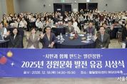 서울복지타임즈 이재연 기자 | 수원특례시는 18일 팔달문화센터 예당마루홀에서 ‘2025년 정원문화 발전 유공 시상식’을 열었다. 정원문화 발전에 기여한 시민과 단체 등에 수원시장상(47개)과 수원시의회 의장상(7개)을 수여했다. 시상은 표창장·감사패 수여, 시민정원 경연대회, 베스트 관리상, 올해의 정원인상 등 분야별로 진행됐다. 지난 10월 효원공원에서 열렸던 ‘2025년 수원시 시민정원 경연대회’ 수상팀들을 시상했다. 하나의 물방울이 만들어내는 무한한 생명의 파장을 표현한 ‘완뚝원정대’의 ‘리플(ripple) 가든’이 대상을 받았다. 어린 꽃이 꿈꾸는 산의 이미지를 담은 ‘진달래동산 꽃뫼’ 팀의 ‘어린 꽃이 꿈꾸는 뫼(산)’이 최우수상, 빛과 생명의 흐름을 표현한 ‘빛나게’ 팀의 ‘Flowing Light, Flowering Life(플로잉 라이트, 플라워링 라이프’가 우수상을 받았다. 이재준 수원시장은 “도심 속 열린 정원은 시민에게 휴식처가 되고, 기후 위기 대응에는 힘이 된다”며 “정원을 가꾼 수상자 노력에 감사하며 시민 일상에 초록이 늘도록 지원을 이어가겠다”고 말했다.