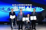 서울복지타임즈 이재연 기자 | 김천시장애인체육회는 2월 25일 김천시청 3층 강당에서 ‘스포츠 중심도시 김천에서 장애인과 비장애인 모두가 함께하는 스포츠 환경 조성’을 위한 김천시장애인체육회의 공식 출범식을 가졌다. 이번 행사에는 배낙호 회장을 비롯하여 장애인체육회 임원 등 300여 명의 내빈들이 참석하여 장애인체육회의 힘찬 출범을 알렸다. 행사는 장애인과 비장애인이 조화롭게 어우러지는 김천의 미래를 그리듯 시립교향악단의 연주와 시립합창단의 합창으로 구성된 식전 공연으로 시작됐으며, 여상규 상임부회장의 출범선언, 손태옥 사무국장의 경과보고가 진행됐다. 이어 회기의 릴레이 전달, 도장애인체육회의 인준패 전수, 공로패 수여, 가맹단체 인준서 수여가 진행됐으며, 배낙호 회장의 기념사, 안용우 도장애인체육회 상임부회장 격려사, 나영민 의장, 박선하 도의원, 최한동 김천시체육회장의 축사와 떡케이크 절단 퍼포먼스가 이어졌다. 김천시는 2024년 12월 2일 장애인체육회 설립추진계획을 수립하고 12월 11일 설립준비위원회 구성, 수차례의 회의를 거치고 규약 및 제규정의 제정, 인력채용 및 사무실 인프라 구축 등