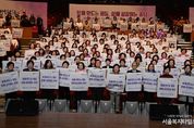 서울복지타임즈 이재연 기자 | 충남도는 9일 도청 문예회관에서 ‘함께 만드는 평등, 함께 성장하는 충남’을 주제로 세계 여성의 날 기념식을 개최했다. 도는 제118주년 세계 여성의 날을 맞아 자유와 인권을 향한 여성의 용기 있는 발걸음을 기억하고 성평등 실현을 위한 연대·협력을 다짐하는 자리로 이번 행사를 마련했다. 김태흠 지사와 , 강임금 충남여성단체협의회장, 여성단체 회원 등 350여 명이 참석한 가운데, 이번 행사는 식전 공연, 기념사, 퍼포먼스, 기념 영상 상영, 결의문 낭독, 축하 공연 등의 순으로 진행했다. 이날 참석자들은 세계 여성의 날 기념 영상을 함께 보고 결의문을 낭독하며 여성 인권 향상과 차별 없는 사회 실현을 위한 실천 의지를 다졌다. 이 자리에서 김 지사는 “내년 말 완공을 준비 중인 여성가족플라자를 여성단체들이 안정적으로 활동하고 정책 역량도 키울 수 있는 실질적 거점으로 키워 나갈 것”이라면서 “저출생 대책이자 여성 친화적 사회를 만들기 위한 풀케어 돌봄정책도 올해 더 내실 있게 추진할 계획”이라고 말했다. 이어 김 지사는 “여성들이 결혼·출산·육아와 돌봄