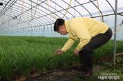 서울복지타임즈 이재연 기자 | 고성군은 11월 13일, 부자(父子)가 함께 부추를 재배하는 대가면 유흥리 부추 재배 농가를 방문해 부추 현장을 살피고 농업인들을 격려했다. 이날 방문은 농업의 세대 계승과 가족농의 가치를 되새기고, 현장중심의 소통 행정을 강화하기 위해 마련됐으며, 이상근 고성군수는 부추 재배하우스와 작업장을 둘러보며 부자(父子) 농업인이 함께 땀 흘리는 모습을 살피고 애로사항을 청취했다. 해당 농가는 아버지 배정안(1965년생)씨와 아들 배영진(1993년생)씨가 함께 부추 하우스 20여동(2.1ha)에 부추를 재배하고 있는 곳으로, 아들은 올해부터 본격적으로 아버지의 농사 노하우를 이어 받아 부추를 재배하기 시작했다. 이상근 고성군수는 “부자지간이 함께 일하며 농사를 이어가는 모습이야말로 고성 농업의 희망”이라며 “농업이 세대를 넘어 계승되고, 젊은 농업인들이 미래를 설계할 수 있도록 군이 든든히 뒷받침하겠다”라고 말했다. 또한 “기후변화와 노동력 부족 등 어려움 속에서도 꿋꿋이 농사를 이어가는 여러분이 바로 고성의 힘”이라며, “현장에서 느끼는 문제를 군정에 적극적으로 반영하겠다”