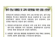 서울복지타임즈 이재연 기자 | 전라남도교육청과 전라남도가 광주·전남 대통합과 교육 대전환을 위한 공동선언문을 발표했다. 김대중 교육감과 김영록 지사는 8일 오전 전남도청에서 만나 최근 논의되고 있는 광주·전남 통합과 관련, “지역 소멸 위기를 넘어 광주·전남 대통합을 주도하고, 대한민국의 새로운 성장축이 될 ‘(가칭) 광주전남 특별시’ 출범이 역사적 사명임을 깊이 공감한다.”며 이같이 선언했다. 전남교육청은 4개 항으로 된 선언문에서 지역 소멸 위기 극복을 위한 광주·전남 대통합에 적극 찬성하며, 통합 특별시의 성공적인 안착을 위해 전남도와 긴밀히 협력하기로 했다. 이어, ‘광주·전남 행정통합 추진협의체’에 핵심 주체로 참여하여, 선진형 초광역 통합모델을 구축하는 데 협력하기로 했다. 또한, 전남교육청은 교육·학예 분야와 관련된 사항에 대해 광주광역시교육청과 함께 법안 작성 및 검토에 앞장서기로 했다. 이와 함께, 전남교육청과 전남도는 통합 과정에서 교육 현장의 목소리를 반영하며, 교육 현장이 체감할 수 있는 교육 대전환과 미래 인재 양성을 위해 모든 역량을 결집한다는 데 합의했다. &