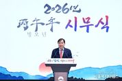 서울복지타임즈 이재연 기자 | 제주특별자치도가 ‘제주 먼저 미래로’를 기치로 인공지능(AI)·에너지·우주산업을 중심으로 미래 제주 건설에 나선다. 제주도민이 에너지를 사고파는 ‘재생에너지 연금’을 도입하고, 스마트 복지 생태계를 구축해 청년들이 제주에서 배우고 일하며 살 수 있는 기반을 만든다는 계획이다. 오영훈 제주도지사는 2일 오전 문예회관 대극장에서 열린 2026년 시무식에서 "글로벌 대전환 속에서 마침내 제주에 기회가 찾아왔다”며 이같이 밝혔다. 이날 시무식에는 도 및 행정시, 도내 공공기관장 등 800여 명이 참석했다. 시무식은 청년 밴드 공연으로 시작됐다. 이어 상영된 도민 영상에서는 관광 활성화, 청년 일자리 확대, 양육비 지원, 임대주택 확충, 장애인 고용 개선, 탄소중립 청년 참여 등 경제·복지·일자리·주거·환경 전반에 걸친 바람이 쏟아졌다. 오 지사는 지난해 성과로 내란 사태 극복을 통한 관광객 수 플러스 전환(12월 12일), 고향사랑기부 100억 원 돌파, 1차산업 조수입 5조 원 달성, 싱가포르 축산물 수출, 분산에너지 특구 지정 등을 제시했다. 동시