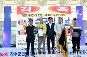 서울복지타임즈 이재연 기자 | 장수군은 지난 23일 장수종합경기장에서 개최된 의암주논개 탄신 제451주년 기념 제58회 장수군민의 날 기념식·제57회 장수군민 체육대회를 성공리에 마무리했다. 장수군민의 날 기념식과 장수군민 체육대회는 우리 군의 대표적인 역사 인물인 의암 주논개의 정신을 되새기기 위해 주논개 탄신일인 음력 9월 3일에 맞춰 해마다 개최된다. 이날 행사는 최훈식 군수를 비롯해 최한주 장수군의회 의장과 의원, 관내 기관·사회단체장, 지역주민, 선수단 등 1,000여 명이 참석하여 그 의미를 더했다. 기념식은 식전공연을 시작으로 △선수단 입장식 △국민의례 △군민헌장 낭독 △시상(군정발전유공자 표창, 장수군 명예군민증 수여, 장수군민의 장) △기념사 및 축사 △논개상 추대자 소개 순으로 진행됐다. 수상자는 지역의 명예를 드높이고 지역 발전에 앞장서 온 정연길(이티바이오텍 대표), 이수민(NH농협 장수군출장소장) 씨에 대한 군정발전유공 시상이 이뤄졌으며 김준오 NH농협 전 장수군지부장은 장수군 명예군민증을 수여 받았다. 또한 제43회 장수군민의 장 수상자인 문화체육장 오재영(남·