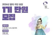 서울복지타임즈 이재연 기자 | 포천문화관광재단은 지역 아동·청소년을 위한 문화예술교육 프로그램 ‘2026 꿈의 극단 포천’의 1기 신규 단원을 오는 3월 12일까지 모집한다. ‘꿈의 극단’은 문화체육관광부가 주최하고 한국문화예술교육진흥원과 포천문화관광재단이 주관하며 포천시가 후원하는 사업으로, 아동·청소년이 예술 활동을 통해 자존감을 키우고 공동체 의식을 함양할 수 있도록 지원하는 문화예술교육 프로그램이다. 이번 ‘2026 꿈의 극단 포천’은 일반적인 연극 교육을 넘어 한국 고유의 전통 소리와 춤, 악기가 어우러지는 ‘국극(전통 뮤지컬)’을 특화 교육 과정으로 운영한다. 이를 통해 지역 아동·청소년들이 전통 예술을 놀이처럼 친숙하게 접하고, 우리 문화에 대한 이해와 창의적 표현 능력을 함께 키울 수 있도록 지원할 계획이다. 모집 대상은 초등학교 3학년부터 중학교 2학년까지이며, 해당 연령에 포함되지 않는 초등학교 1·2학년 아동도 ‘예비 단원’으로 신청할 수 있다. 모집 인원은 총 30명이다. 최종 선발된 단원에게는 오는 4월부터 11월까지 포천38문화예술창작소에서 매주 월요일 오후 4시부터 7시까
