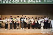 서울복지타임즈 이재연 기자 | 담양군은 지난 2일 담빛농업관 대강당에서 ‘제4기 담양군 주민자치회 성과공유회’를 개최했다고 밝혔다. 이번 주민자치회 성과공유회는 12개 읍면 주민자치회 위원, 주민, 관계 공무원 등 300여 명이 참석한 가운데 우수 주민자치회(대덕면) 및 주민자치위원(12개 읍면)에 대한 표창, 읍면별 주민자치회 우수사례 영상 시청, 주민자치 활성화를 위한 소통시간, 주민자치센터 프로그램 공연 순으로 진행됐다. 행사장 3층에서는 주민자치센터 수강생들의 서각, 캘리그라피, 라탄공예, 비누공예, 아크릴화, 도자기 작품 등이 전시됐으며, 주민자치 위원들의 다도차 봉사도 함께 진행돼 따뜻한 분위기를 더했다. 풍물, 장구, 통기타, 댄스, 난타 등 공연도 이어져 주민들의 관심을 모았다. 제4기 담양군 주민자치연합회(회장 조희범)는 지난해 1월 출범 이후 주민이 직접 지역의 문제를 발굴해 주민참여예산에 반영해 왔으며, 읍면 특색을 살린 축제와 주민 역량 강화 문화예술 프로그램, 환경 정비와 봉사활동을 중심으로 자치 기반을 넓혀가고 있다. 정철원 담양군수는 “이번 성과공유회는 지난