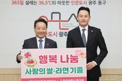서울복지타임즈 이재연 기자 | 광주 동구는 광주무등청년회의소가 지난 9일 지역 내 취약계층의 따뜻한 겨울나기 지원을 위해 백미와 라면을 후원했다고 밝혔다. 이번 전달식은 지역사회 나눔 문화를 확산하기 위한 것으로, 백미 10㎏ 30포와 라면 30박스 등 총 150만 원 상당의 물품이 기부됐다. 후원 물품은 겨울철 한파로 어려움을 겪는 쪽방촌 주민들의 식사 지원에 활용될 예정이다. 백미는 들랑날랑 커뮤니티센터에서 쪽방촌 주민을 위한 무료 점심 식사 제공에 사용되며, 라면은 쪽방촌 공유부엌에 비치해 주민들이 언제든지 간편한 식사와 간식을 자율적으로 이용할 수 있도록 할 계획이다. 김창범 회장은 “지역사회와 함께 성장해 온 청년단체로서 쪽방촌 주민들을 위한 식사 지원에 동참하게 되어 매우 뜻깊게 생각한다”면서 “앞으로도 지역사회에 도움이 되는 나눔 활동을 지속적으로 이어가겠다”고 말했다. 동구 관계자는 “연일 이어지는 한파 속에서 이웃의 일상을 지켜주는 따뜻한 나눔을 실천해 주신 광주무등청년회의소에 깊이 감사드린다”면서 “사람을 먼저 생각하는 인문도시 동구의 가치가 이번 나눔을 통해 현장에서