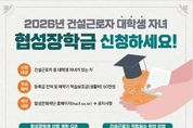 서울복지타임즈 이재연 기자 | 건설근로자공제회(이사장 직무대행 권혁태)와 협성문화재단(이사장 박석귀)은 건설근로자의 대학생 자녀 학업 지원을 위해 ‘2026년 신규 협성장학생’을 선발한다. 지원대상은 건설근로자공제회에 등록된 건설근로자로 총 적립일수가 600일 이상이고, 2025년도 근로내역은 최소 100일이다. 건설근로자의 자녀 가운데 국내 4년제 대학 신입생과 2026년 기준 2~3학년 재학생을 대상으로 장학생을 모집한다. 선발 인원은 20명 내외다. 제출서류, 심사기준은 협성문화재단 홈페이지 내 공지사항을 통해 확인할 수 있다. 접수기간은 오는 12월 15일부터 내년 1월 5일까지이며, 협성문화재단에 제출서류를 등기우편으로 제출해야 한다. 서류합격자는 2026년 1월 26일 발표되며, 면접은 2월 2일부터 6일까지 진행된다. 최종 합격자는 2월 9일 재단 홈페이지에 게시되고, 2월 12일 장학증서 수여식이 열릴 예정이다. 장학생에게는 등록금 전액과 함께 매 학기 50만원의 학습보조금이 지원된다. 또한 인문학 강의, 독서 프로그램, 해외 탐방 및 봉사 활동 등 다양한 장학 프로그램 참여 기회도 제공된다. 장