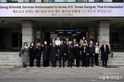 서울복지타임즈 이재연 기자 | 안산시가 정부의 안산사이언스밸리지구(ASV) 경기경제자유구역 지정으로 본격 ‘실행 단계’에 접어들며 적극적인 세일즈 행정에 박차를 가하고 있다. 안산시는 4일 오전 경기경제자유구역 ASV 조성 현장을 시찰하기 위해 주한 독일 대사와 주한 태국 대사, 글로벌 기업 관계자들이 시를 공식 방문했다고 밝혔다. 이민근 안산시장은 이날 ASV 내 한양대 ERICA 캠퍼스혁신파크 조성 부지에서 대사 일행 등에게 구체적 실행 로드맵을 중심으로, 첨단로봇과 인공지능(AI) 등 첨단산업 생태계 조성 전략을 브리핑했다. ■ 기업 관계자들 ASV 조성에 관심 이날 오전 안산시에 게오르크 슈미트 주한독일대사와 타니 생랏 주한태국대사를 비롯한 독일·태국 대사 방문단(독일 경제 참사관, 태국 투자관 및 경제부서장 등)과 양국 기업 대표단이 공식 방문했다. 이들은 안산시청과 안산사이언스밸리지구를 순차 방문해 ASV 개발계획 브리핑과 현장 라운딩을 진행했다. 이민근 안산시장은 ASV 지구 현장에서 직접 개발계획을 브리핑하며, 방문단과 기업 대표들에게 안산사이언스밸리지구의 구체적 공간 구